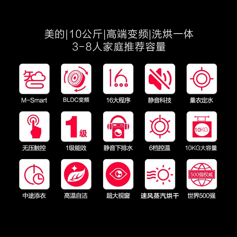 Midea/美的MD100V71WDX 10公斤变频滚筒洗衣机全自动家用洗烘一体