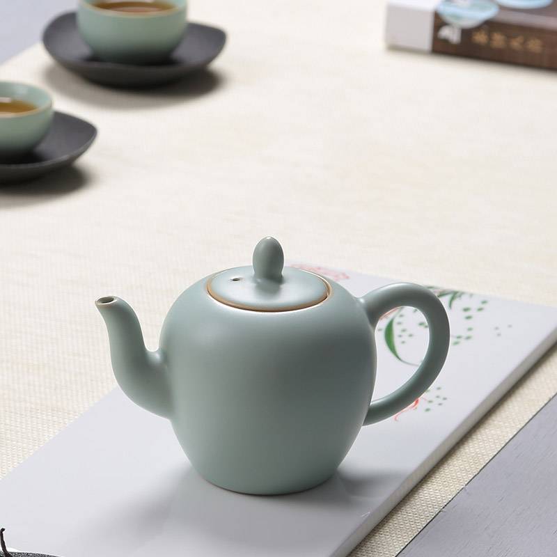 汝窑茶壶开片汝瓷小西施单壶陶瓷功夫茶具家用泡茶壶大号龙泉青瓷 冰裂釉全手工 宜兴 办公室景德镇 创意